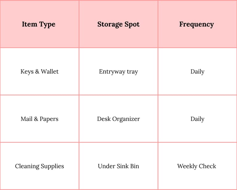 Start by identifying what tends to pile up—mail, shoes, bags, or dishes. Assign each category a specific place. For example, use a small basket for keys, a shoe rack by the door, and a tray for mail.