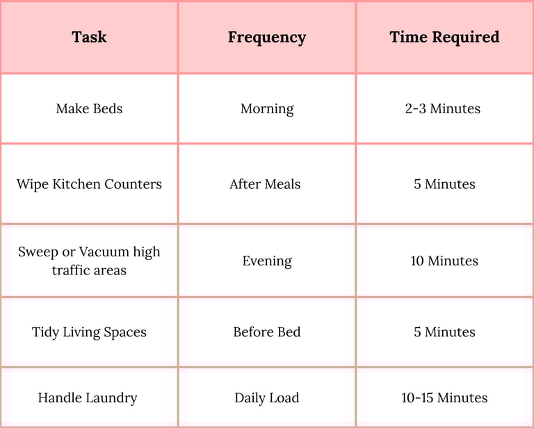 Building a short, repeatable checklist keeps your daily cleaning habits simple and manageable. Focus on tasks that prevent buildup and make your space easier to maintain.