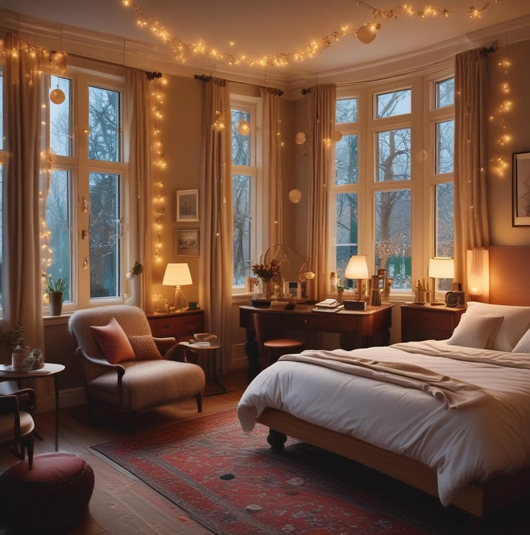 Winter days often feel dreary due to limited sunlight, making the right lighting more important than ever. Avoid harsh overhead lights and instead, opt for warm-hued lamps and string lights. The easiest way to achieve this look is with smart LED Lights. Table lamps with soft yellow bulbs create a pleasant ambiance, while fairy lights can add a whimsical touch when draped over mantels or around windows. Don’t forget to add candles! They are a classic choice for warm decor and not only provide light but also exude comforting scents like cinnamon or vanilla, further enhancing the cozy vibe.