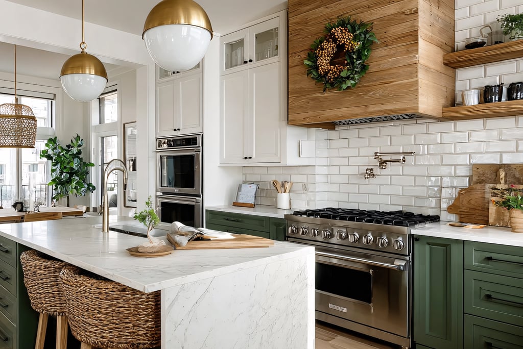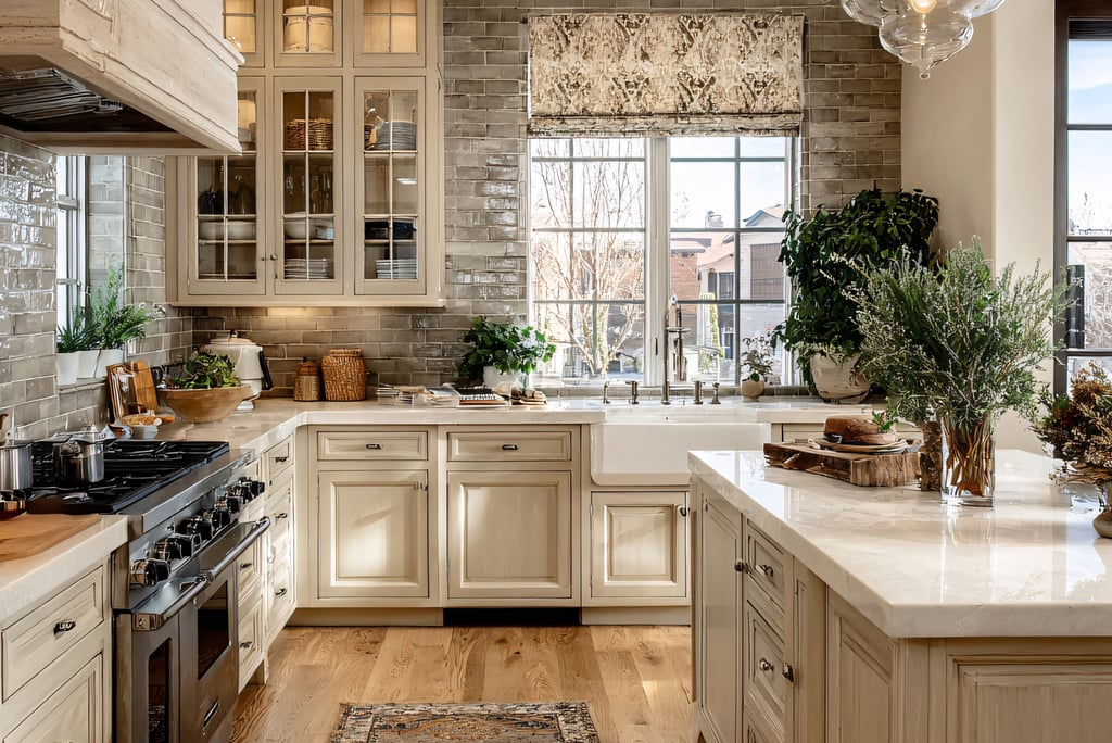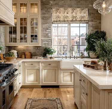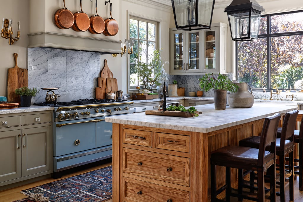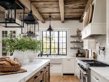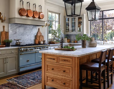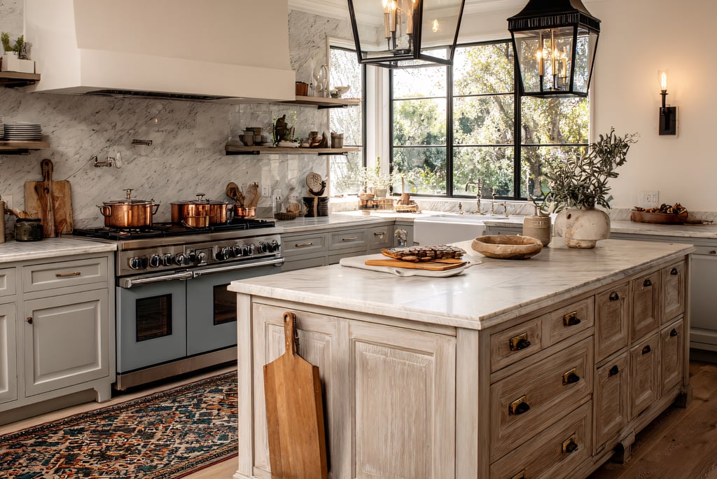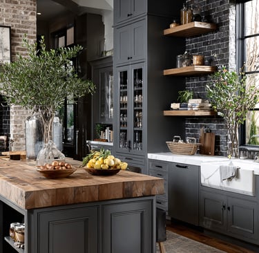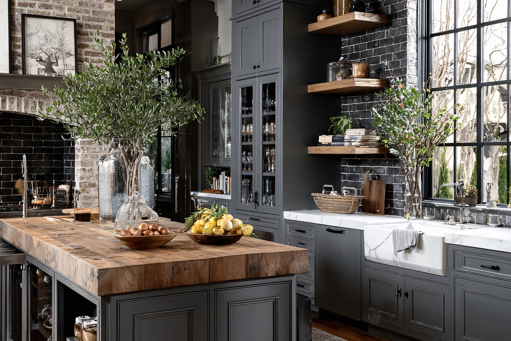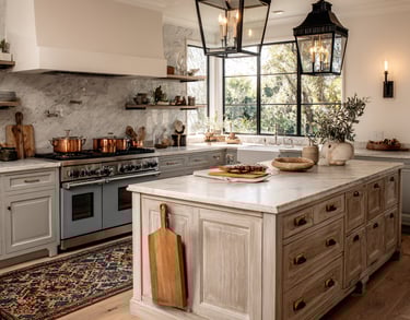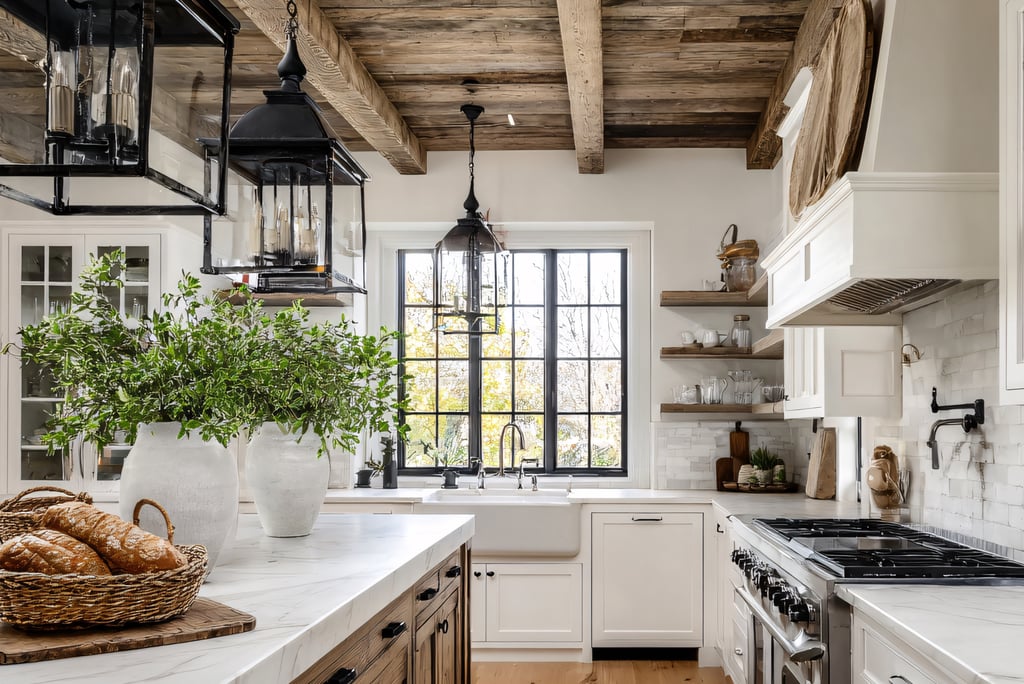 Open shelving creates an airy feel and allows you to display beautiful dishes, vintage jars, or artisanal kitchen tools. To recreate this, simply remove some cabinet doors and arrange your favorite kitchenware to showcase your style while keeping essentials within easy reach.