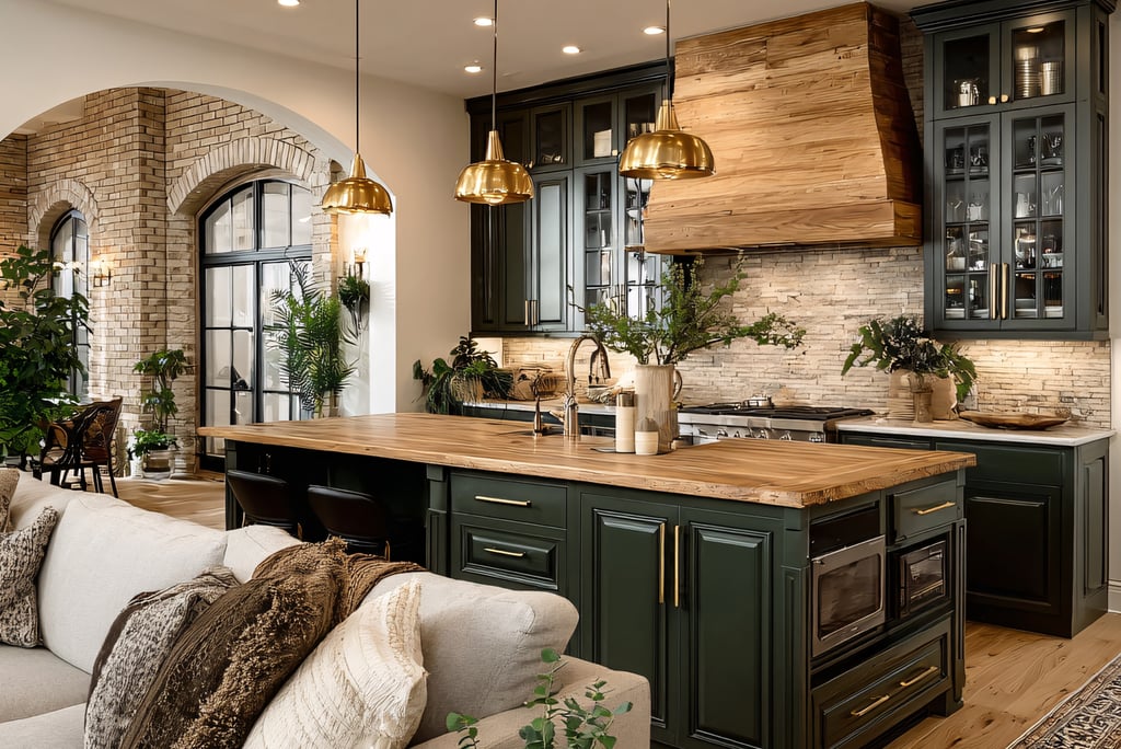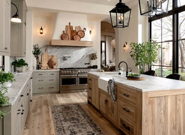 Natural stone countertops and backsplashes enhance the rustic appeal by adding texture and a touch of sophistication. Opt for materials like granite, slate, or limestone. If you're on a budget, consider stone veneer as an alternative that can provide a less expensive yet beautiful option